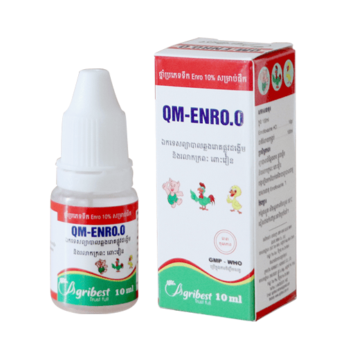ព្យាបាលជំងឺឆ្លងរោគ ផ្លូវដង្ហើម និងរលាកក្រពះ ពោះវៀន បង្កឡើងមកពីបាក់តេរីងាយព្យាបាលជាមួយសារធាតុ Enrofloxacine. ។